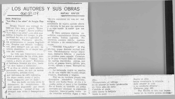 Molina, Paz - Tauler, Sergio - Noche valleja - Los Días y los años