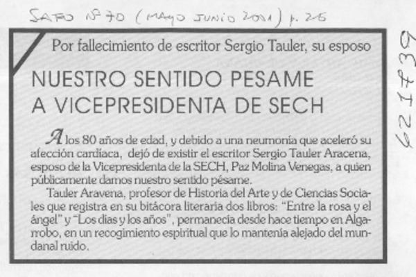 Nuestro sentido pésame a Vicepresidenta de SECH [artículo]