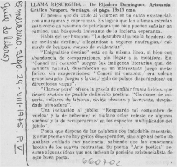 Llama resurgida - Domínguez, Eliodoro - Autores chilenos