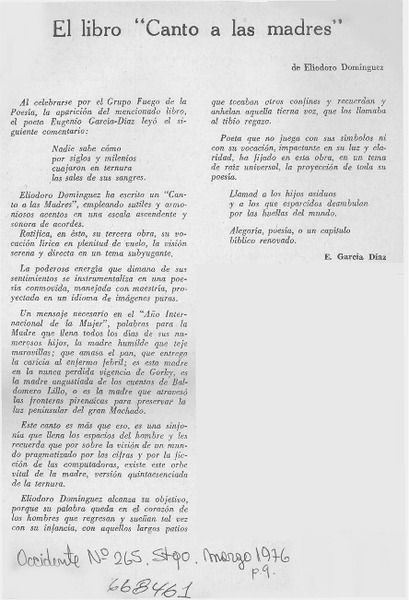El libro "Canto a las Madres" [artículo] E. García-Díaz.