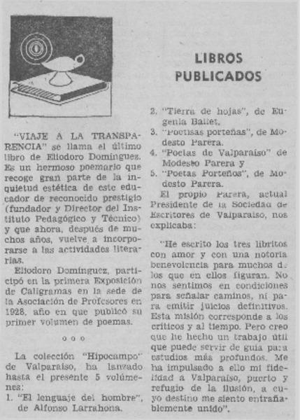 Autores chilenos - Domínguez, Eliodoro - "Viaje a la transparencia"