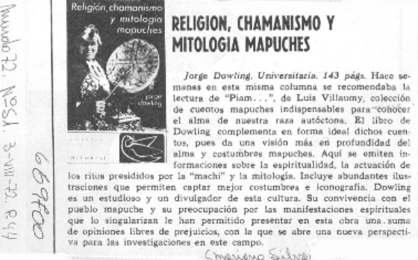 Autores chilenos - Dowling Desmadril, Jorge - Religión, chamanismo y mitología mapuches