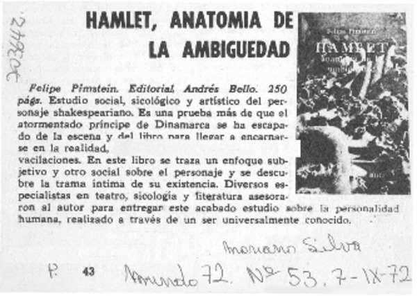 Hamlet, anatomía de la ambigüedad [artículo] Mariano Silva.