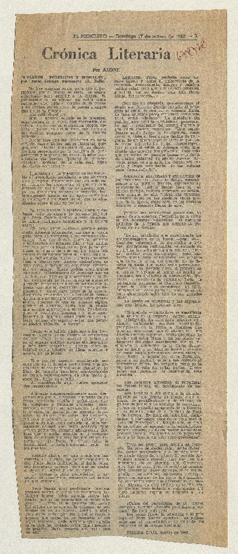 "Ensayos políticos y morales" [artículo] Alone.