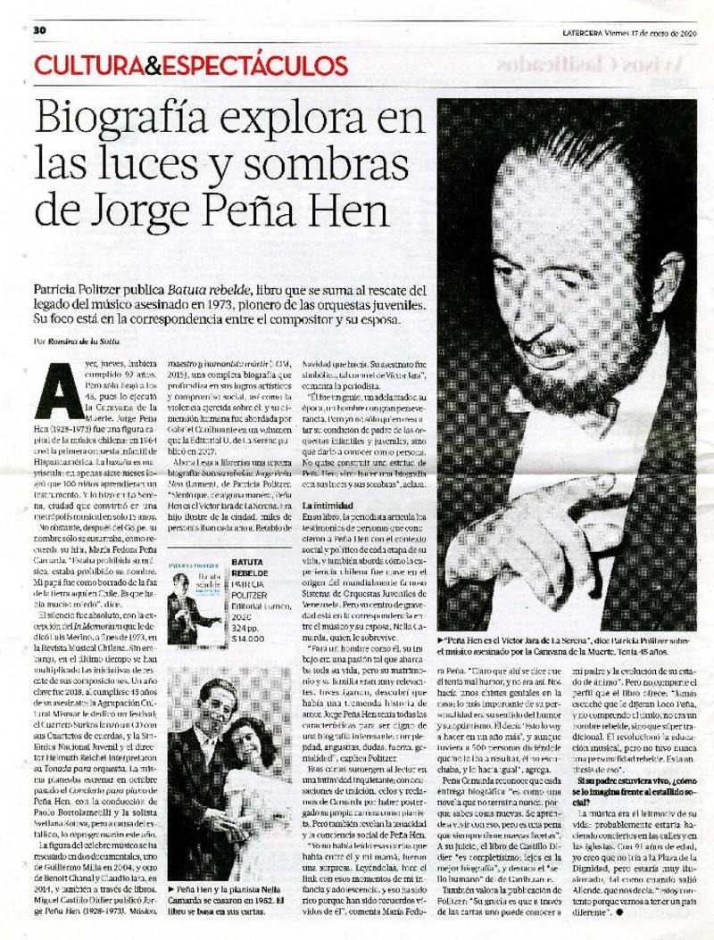Biografía explora en las luces y sombras de Jorge Peña Hen [artículo] Por Romina de la Sotta.