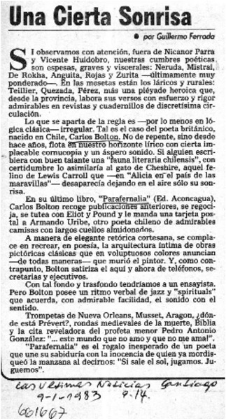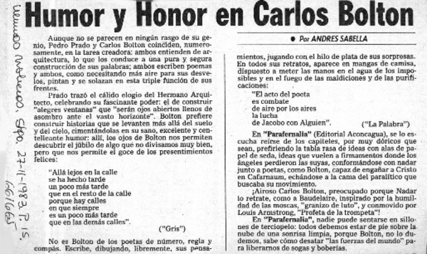Humor y honor en Carlos Bolton [artículo] Andrés Sabella.
