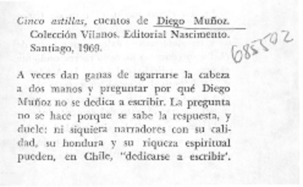 Autores chilenos - Cinco astillas - Muñoz, Diego