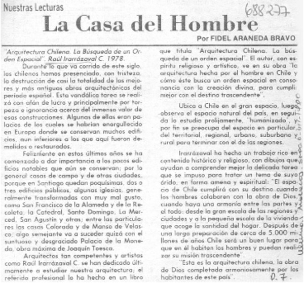 La casa del hombre [artículo] Fidel Araneda Bravo.