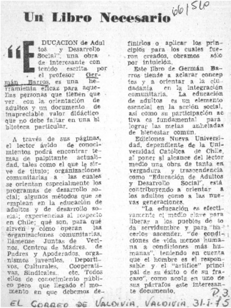 Autores chilenos - Barros, Germán - Educación de adultos y desarrollo social