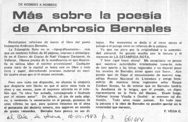 Más sobre la poesía de Ambrosio Bernales [artículo] P. Vega G.