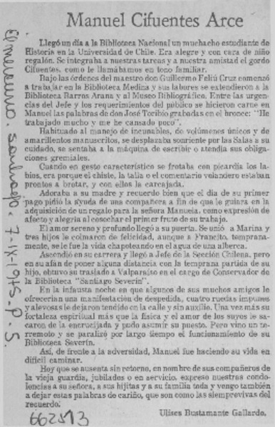 Manuel Cifuentes Arce [artículo] Ulises Bustamante Gallardo.