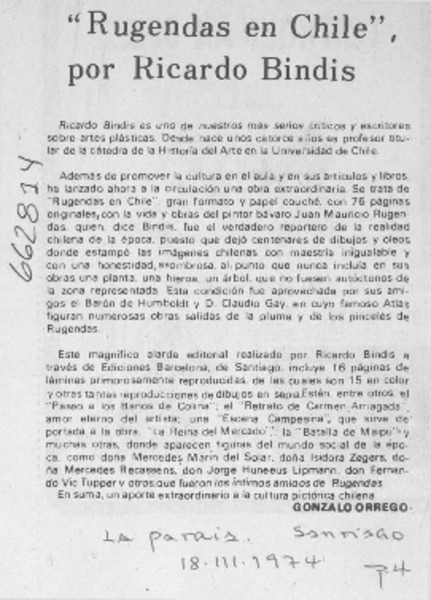 Autores chilenos - Bindis, Ricardo - Rugendas en Chile