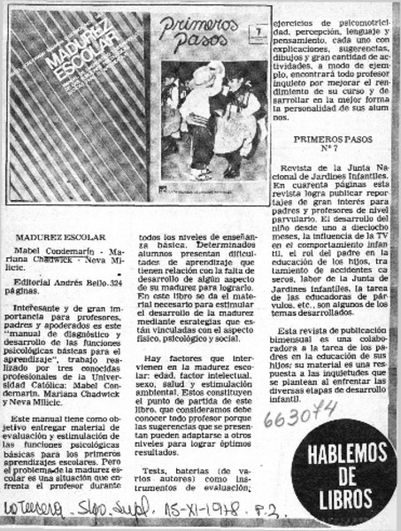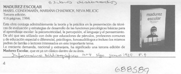 Autores chilenos - Madurez escolar - Chadwick, Mariana - Condemarín, Mabel - Milicic, Neva