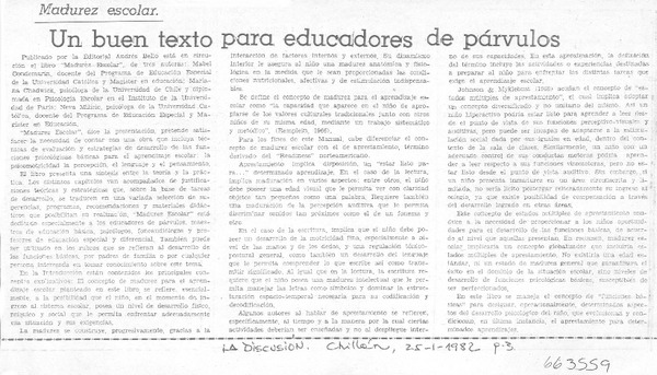 Autoras chilenas - Milicic, Neva - Condemarín, Mabel - Chadwick, Mariana - Madurez escolar