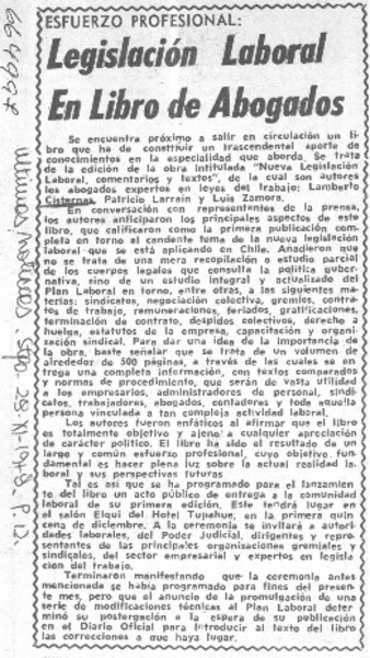 Libro "nueva legislación laboral", para periodistas. [artículo]