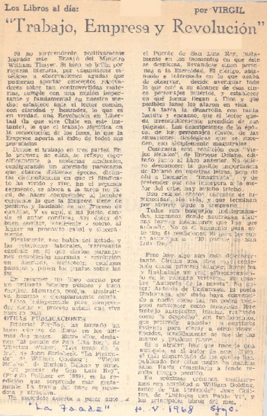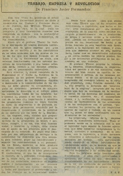 Trabajo, empresa y revolución [artículo] De, Francisco Javier Fermandois.