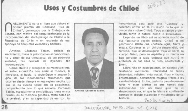 Autores chilenos - Cárdenas Tabies, Antonio - Usos y costumbres de Chiloé