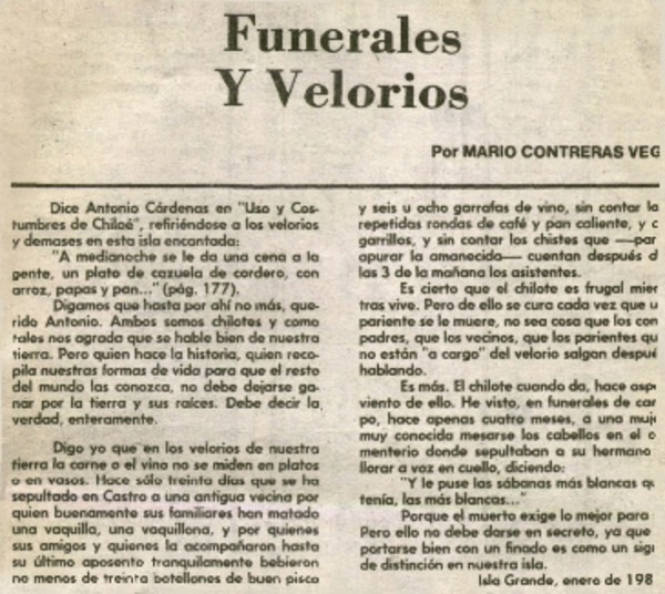 Funerales y velorios [artículo] Mario Contreras Vega.