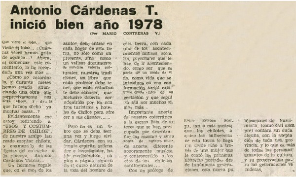 Antonio Cárdenas T. inició bien año 1978 [artículo] Mario Contreras V.
