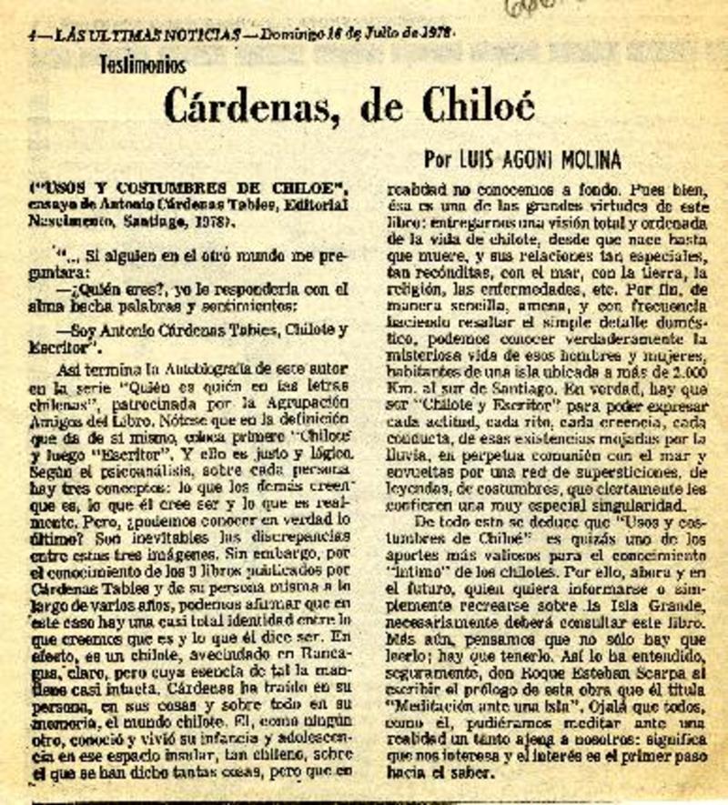 Cárdenas, de Chiloé [artículo] Luis Agoni Molina.
