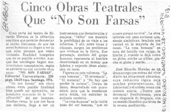Cinco obras teatrales que "No son farsas". [artículo]