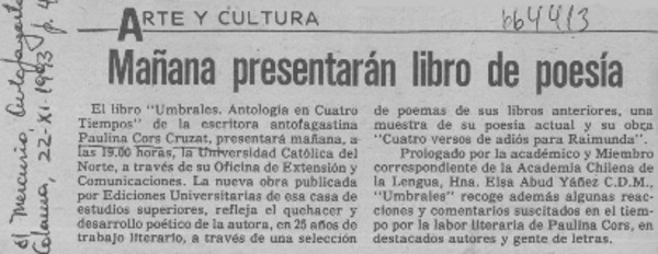 Mañana presentarán libro de poesía. [artículo]