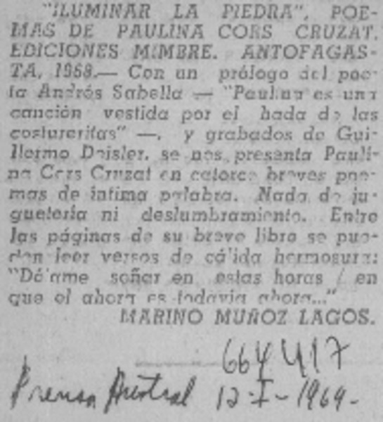 Iluminar la piedra [artículo] Marino Muñoz Lagos.