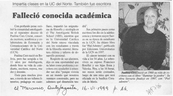 Falleció conocida académica [artículo]