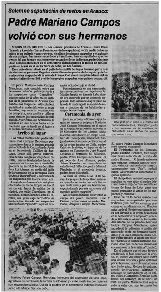 Padre Mariano Campos volvió con sus hermanos [artículo] Juan Costa Tramón y Leonidas Torres Fuentes.