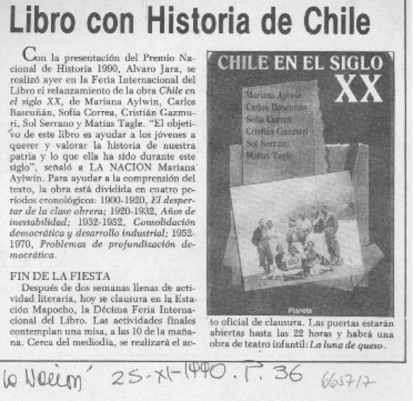 Autores chilenos - Gazmuri Riveros, Cristián - Serrano, Sol - Correa S., Sofía - Bascuñan, Carlos - Aylwin, Mariana - Chile en el siglo XX - Tagle, Matías
