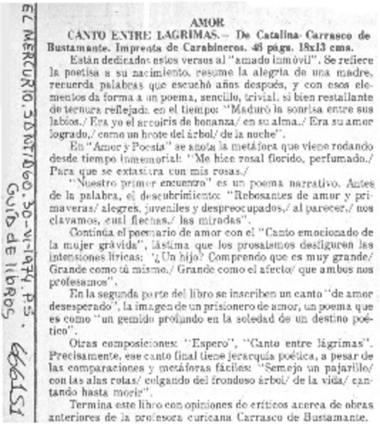 Carrasco de Bustamante, Catalina - Autoras chilenas - Canto entre lágrimas