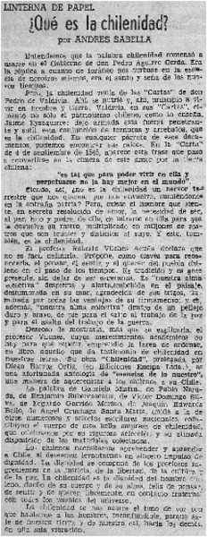 ¿Qué es la chilenidad? [artículo] Andrés Sabella.