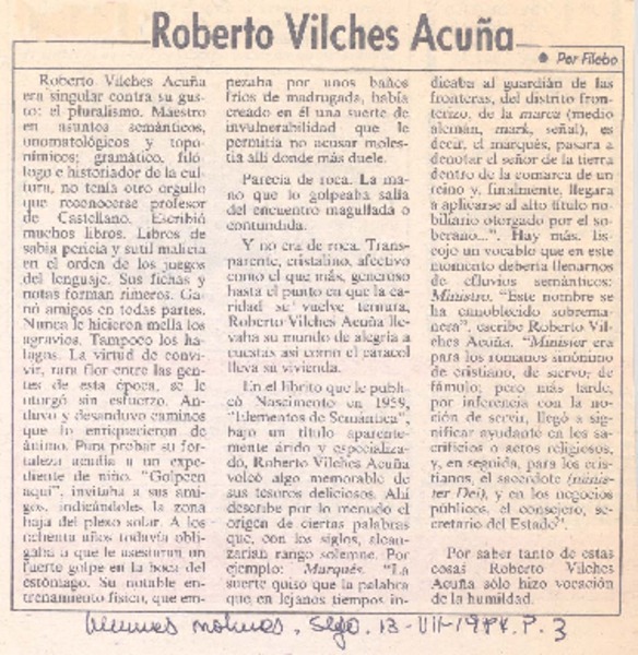 Roberto Vilches Acuña [artículo] Alfonso Calderón.
