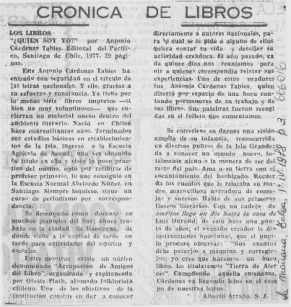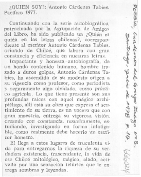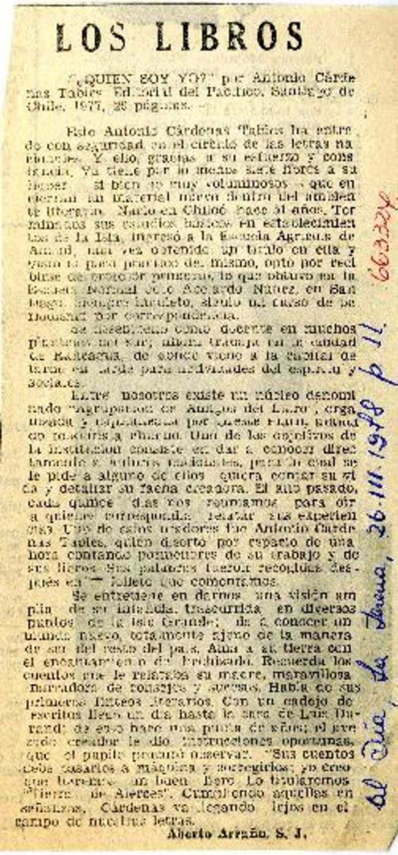 Autores chilenos - Cárdenas Tabies, Antonio - Quién soy yo?
