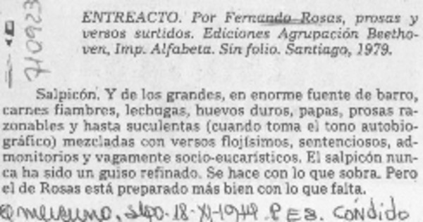 Autores chilenos - Rosas, Fernando - Entreacto