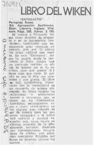 Autores chilenos - Entreacto - Rosas, Fernando