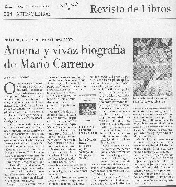Amena y vivaz biografía de Mario Carreño [artículo] Luis Vargas Saavedra.