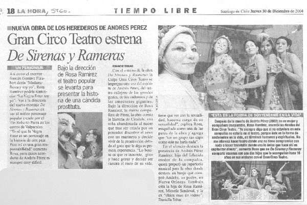 Gran Circo Teatro estrena De sirenar y rameras [artículo] Ignacio Tobar.