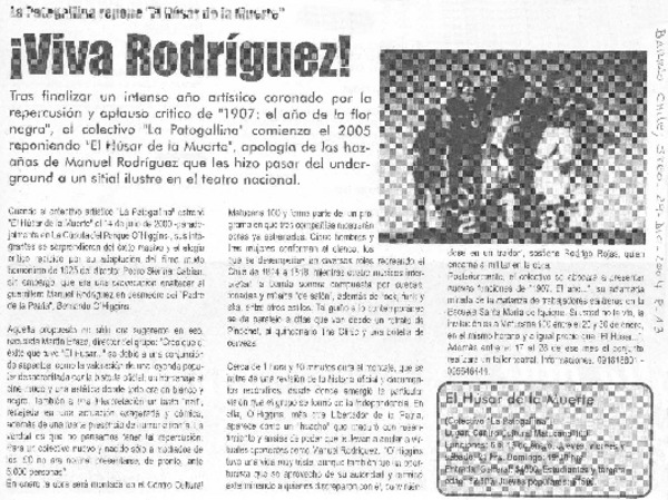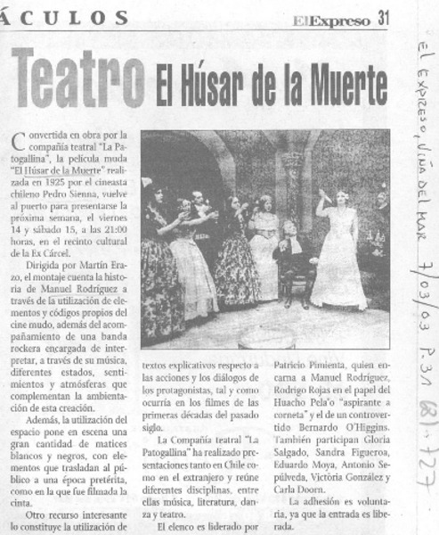 Obra El Húsar de la muerte se reestrena en enero en Matucana [artículo] Rodrigo Miranda.