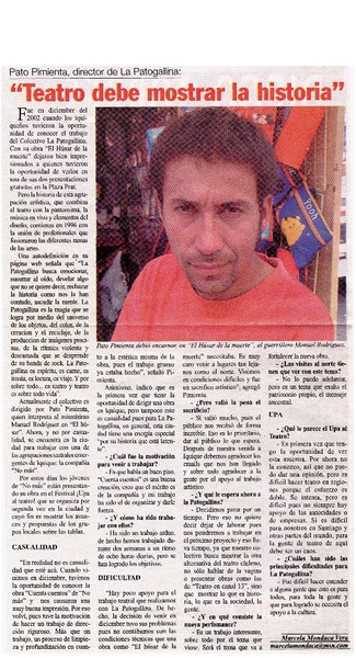 Teatro debe mostrar la historia" : [entrevista] [artículo] Marcela Mondaca Vera.