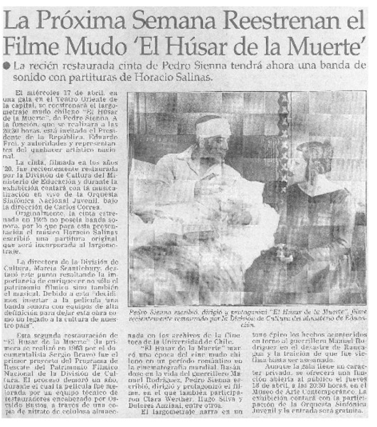 La próximo semana reestrenan el filme mudo "El húsar de la muerte". [artículo]
