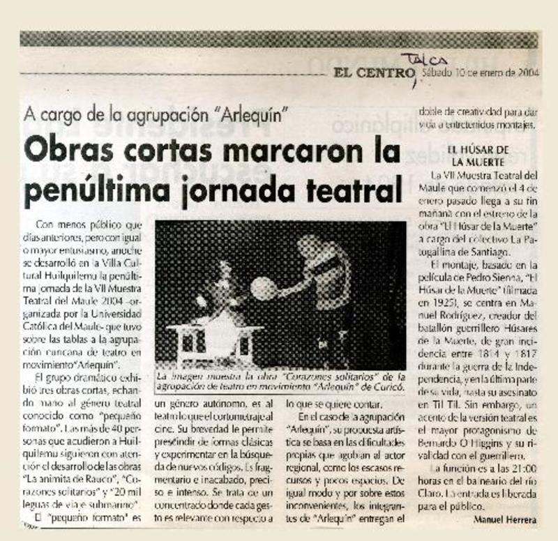 Obras cortas marcaron la penúltima jornada teatral [artículo] Manuel Herrera.