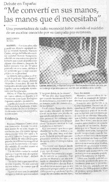Ramón Sampedro, el derecho de morir en paz [artículo] Isabel Margarita Álvarez.