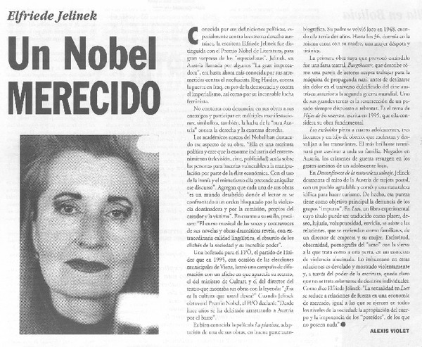 Un Nobel merecido [artículo] Alexis Violet.