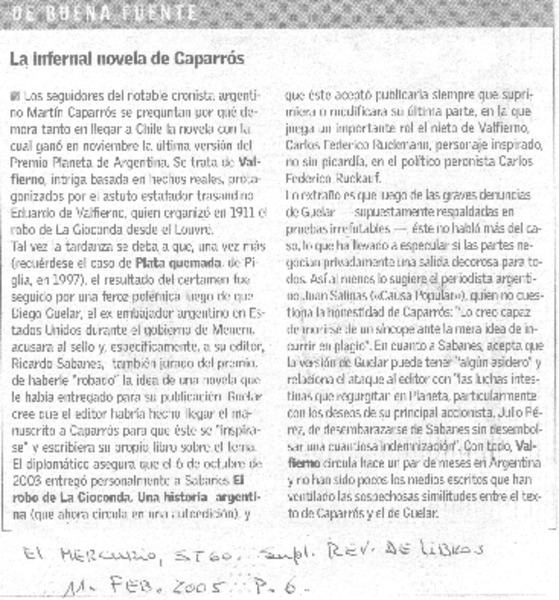 Publicarán en Chile última novela de Martín Caparrós. [artículo]