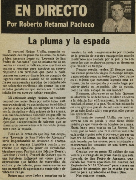 La pluma y la espalda [artículo] Por, Roberto Retamal Pacheco.
