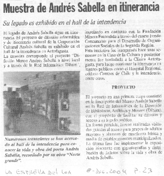 Muestra de Andrés Sabella en itinerancia [artículo]