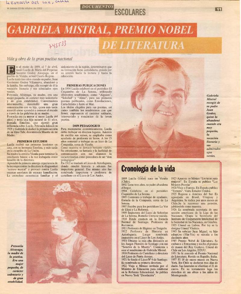 Gabriela Mistral, Premio Nobel de Literatura [artículo].