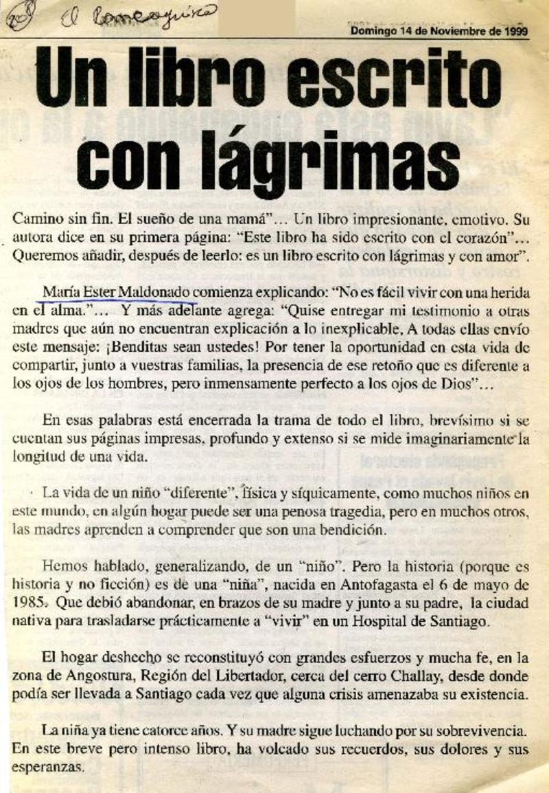 Escribió libraco para relatar la milagrosa sanación de su hija [artículo] Juan L. Bonell B.