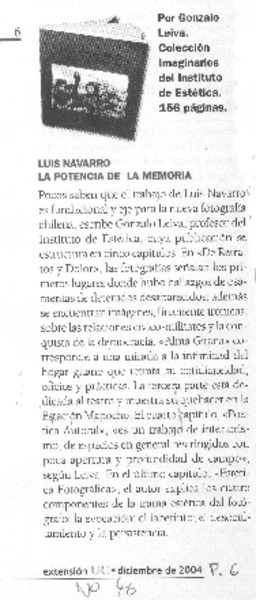 Autores chilenos - Leiva, Gonzalo - Luis Navarro. La potencia de la memoria